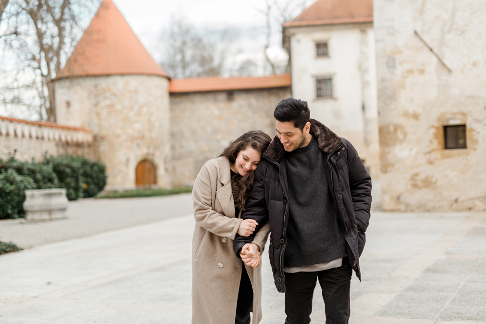 Lara & Bharat | Winter engagement session at Otočec Castle