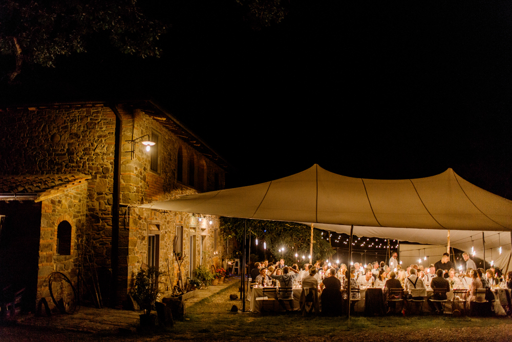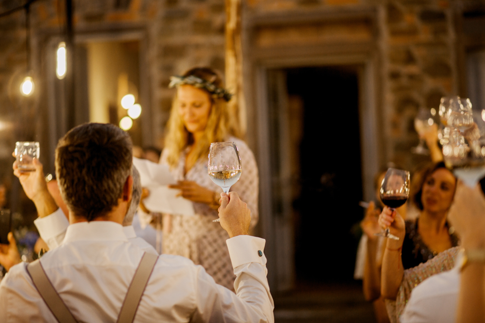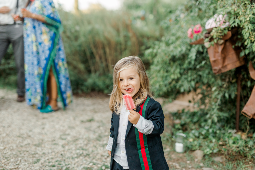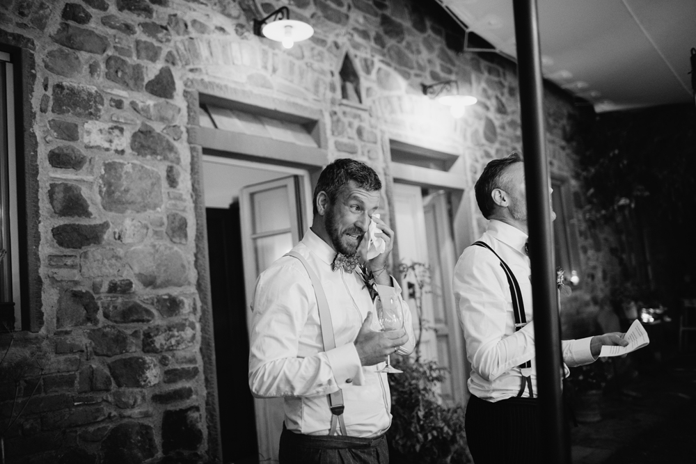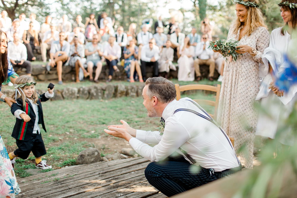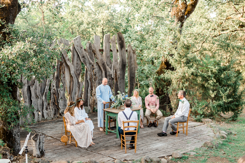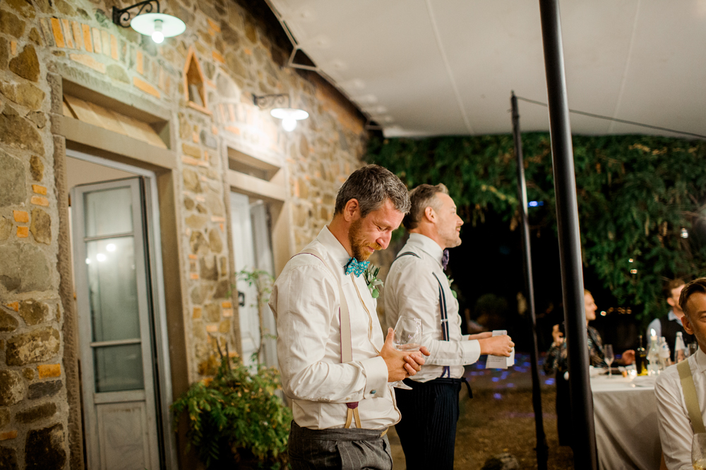 When the day started I immediately knew this was not going to be your average by the books wedding. Their wedding day started with a dip in the pool, followed by the emotional symbolic ceremony in the woods. Their theatre friends surprised them with amazing singing. You could tell by the looks in the crowd everyone was deeply touched. All the guest gathered in front of an amazing tuscan villa for an outdoor dinner and a party to remember.