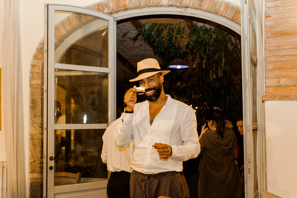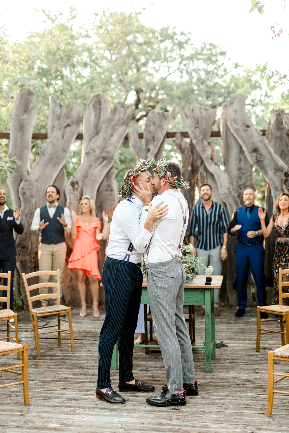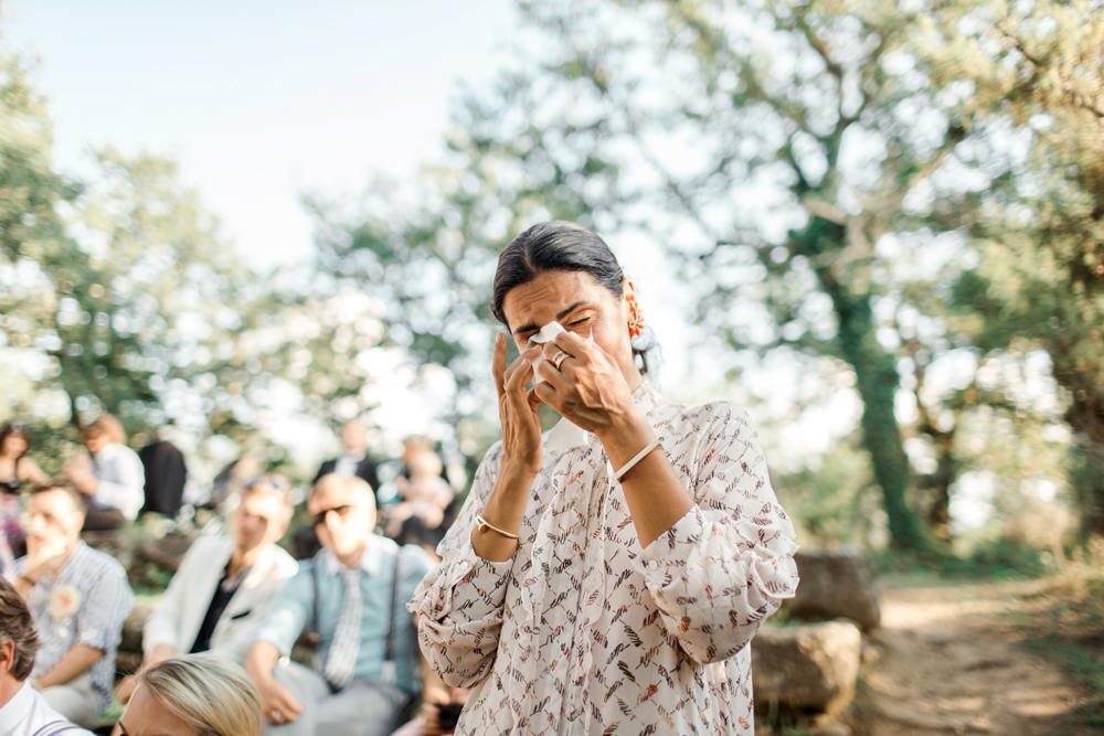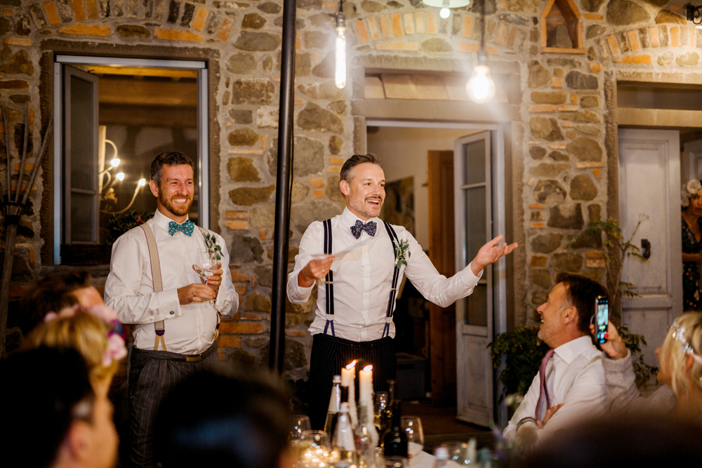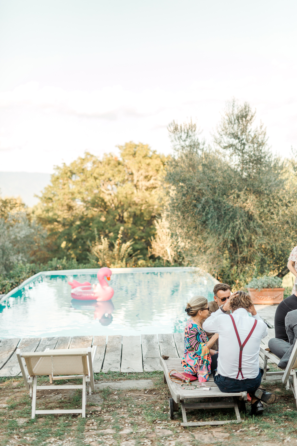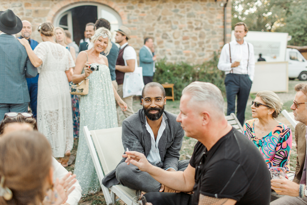 When the day started I immediately knew this was not going to be your average by the books wedding. Their wedding day started with a dip in the pool, followed by the emotional symbolic ceremony in the woods. Their theatre friends surprised them with amazing singing. You could tell by the looks in the crowd everyone was deeply touched. All the guest gathered in front of an amazing tuscan villa for an outdoor dinner and a party to remember.