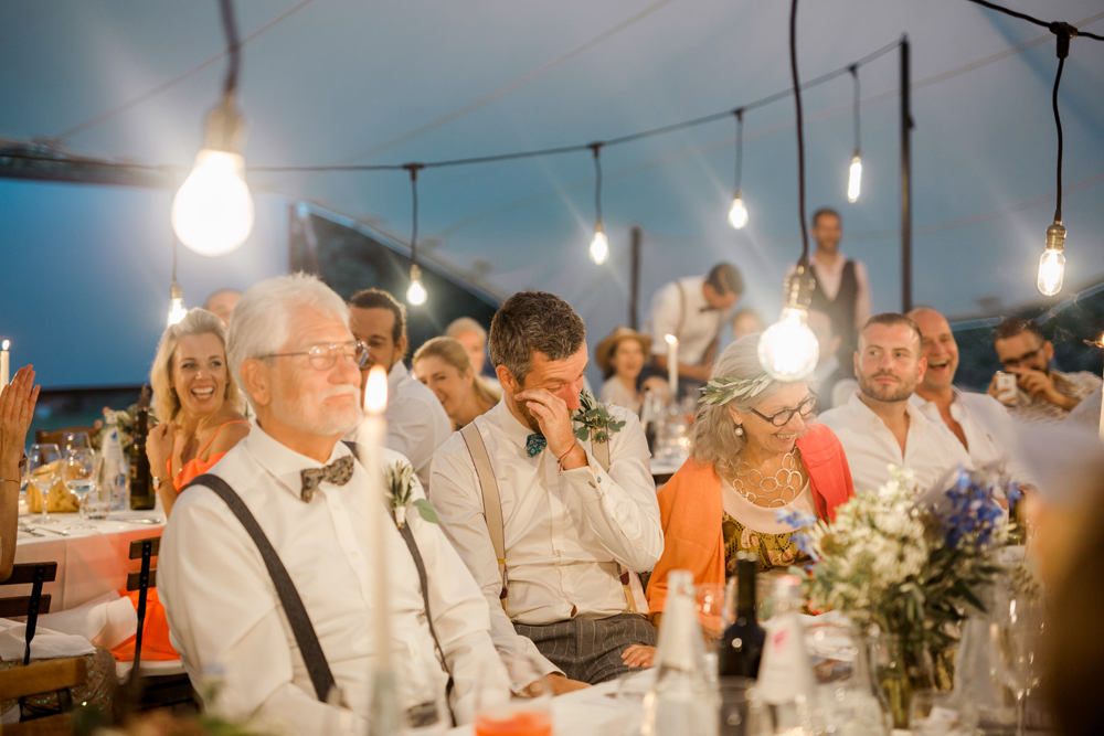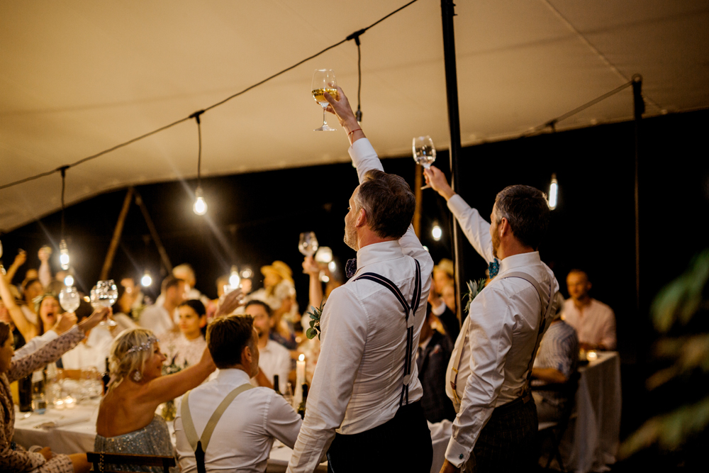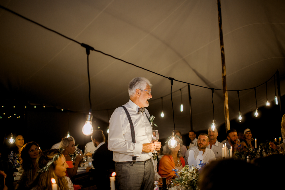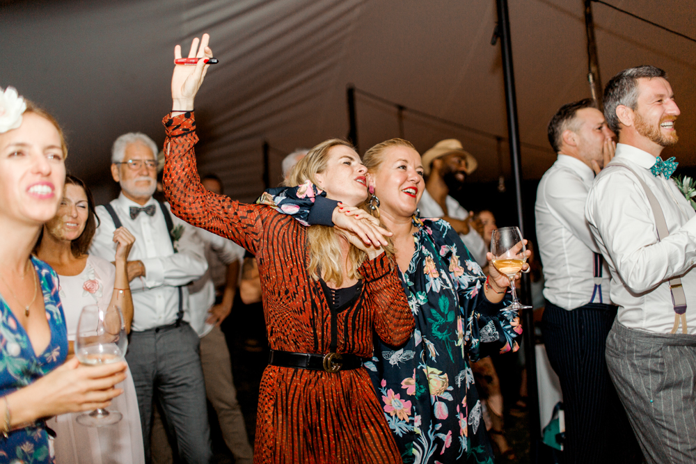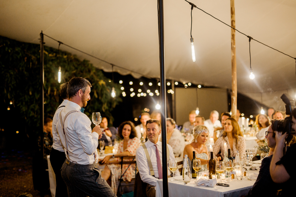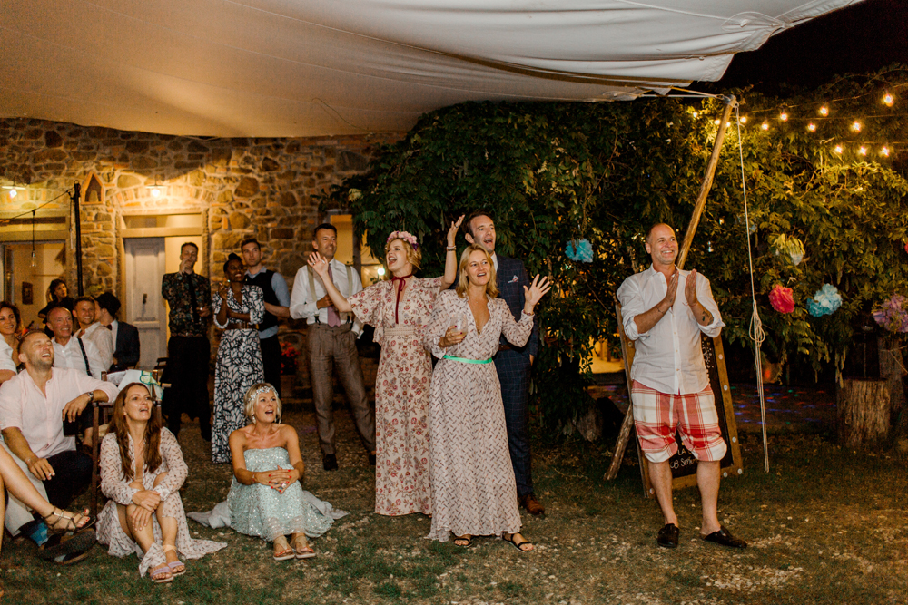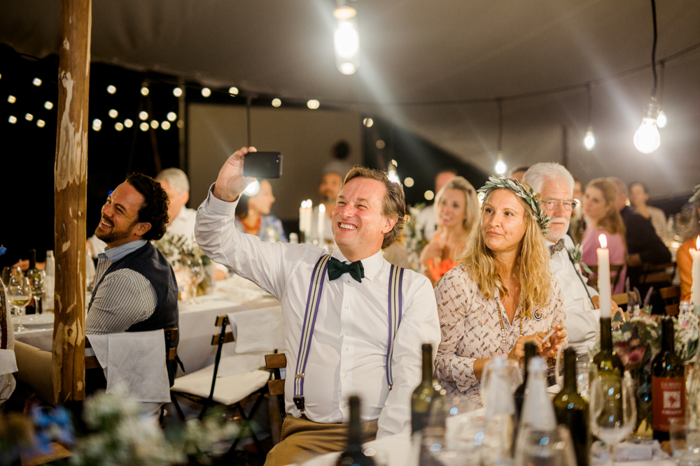 When the day started I immediately knew this was not going to be your average by the books wedding. Their wedding day started with a dip in the pool, followed by the emotional symbolic ceremony in the woods. Their theatre friends surprised them with amazing singing. You could tell by the looks in the crowd everyone was deeply touched. All the guest gathered in front of an amazing tuscan villa for an outdoor dinner and a party to remember.